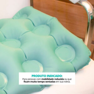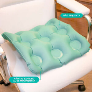 As almofadas ortopédicas quadradas tipo caixa de ovo, da Beniq, são infláveis e podem ser preenchidas com água ou ar. Indicadas para auxiliar na prevenção de dores e feridas em pessoas com mobilidade reduzida ou que permanecem sentadas por longos períodos durante a rotina de trabalho, exigindo cuidados para evitar problemas de saúde.