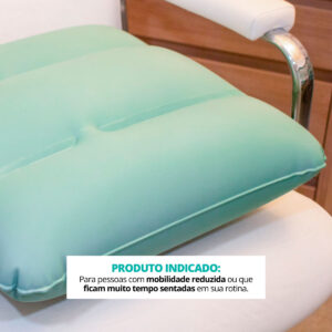 As almofadas ortopédicas quadradas, da Beniq, são infláveis para serem preenchidas com água e ar. São recomendadas para auxiliar na prevenção de dores e feridas em pessoas com mobilidade reduzida ou que permanecem sentadas por longos períodos, exigindo cuidados adicionais para evitar complicações de saúde.